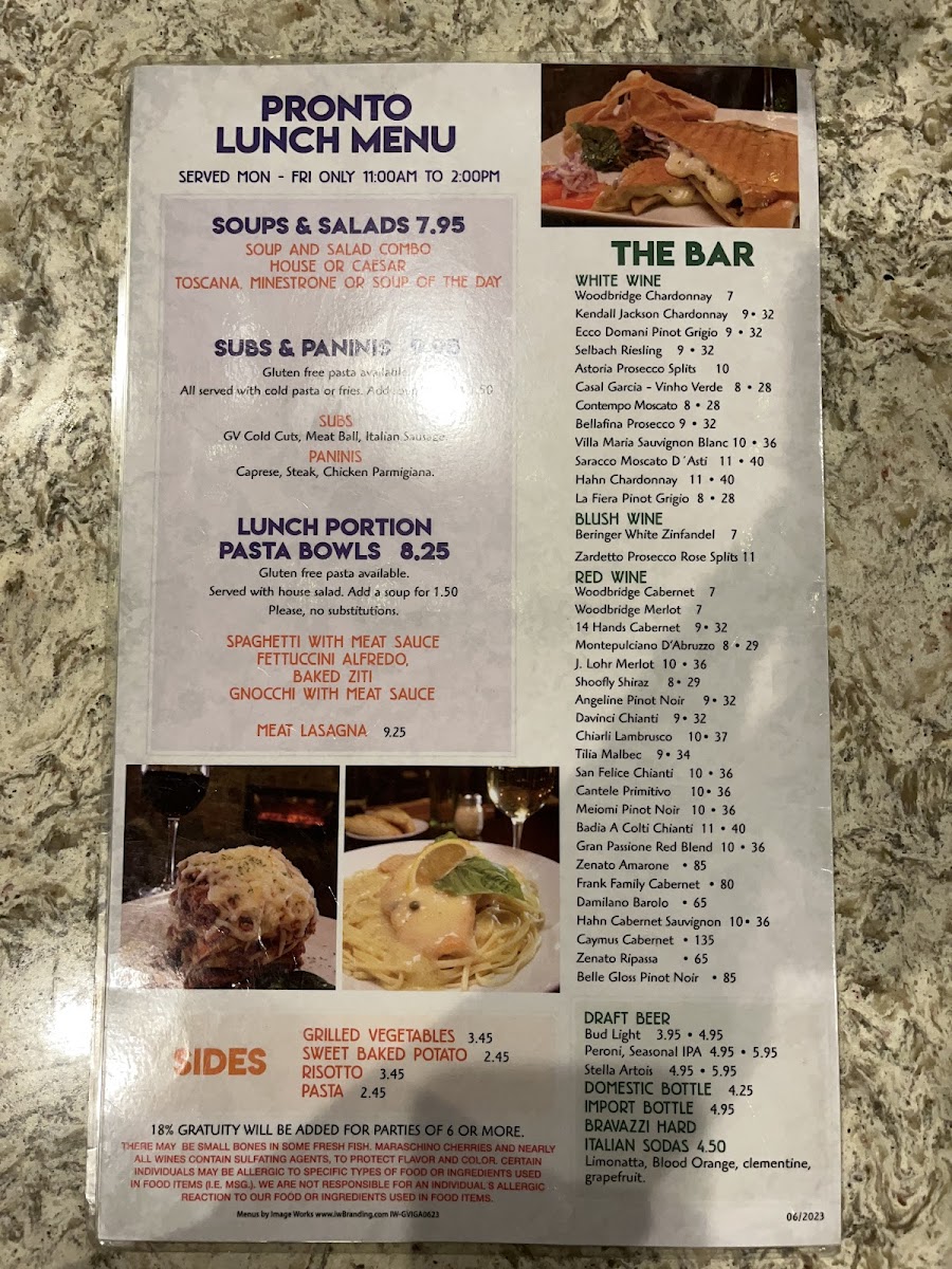 GrapeVine's Casual Italian Dining - Dahlonega Menu