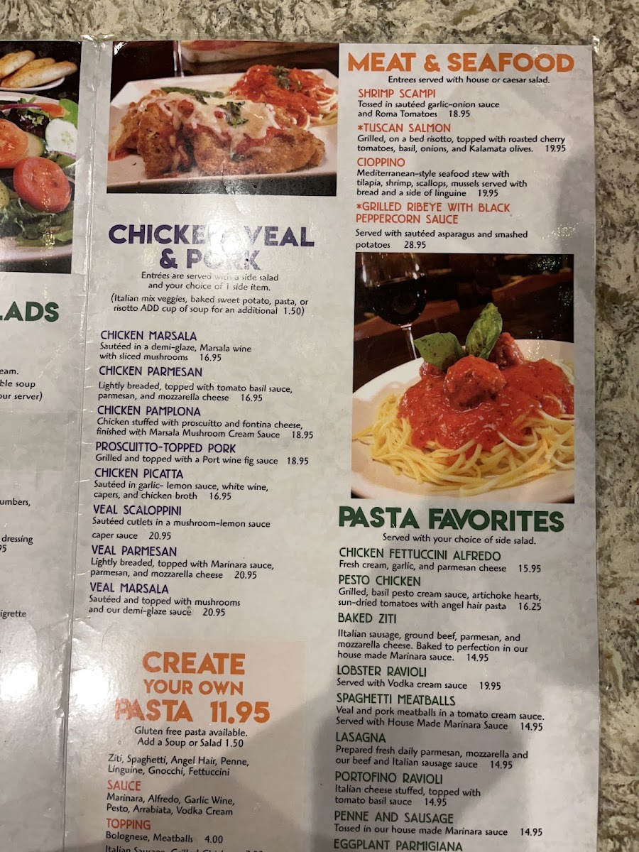 Sautéed in a demi-glaze and topped with Marsala wine and sliced mushrooms.
